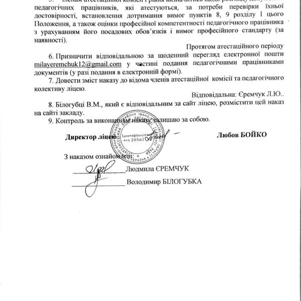 Адміністрація ліцею висловлює подяку вчителю біології Єремчук Людмилі Юріївні за підготовку учениці до олімпіади!